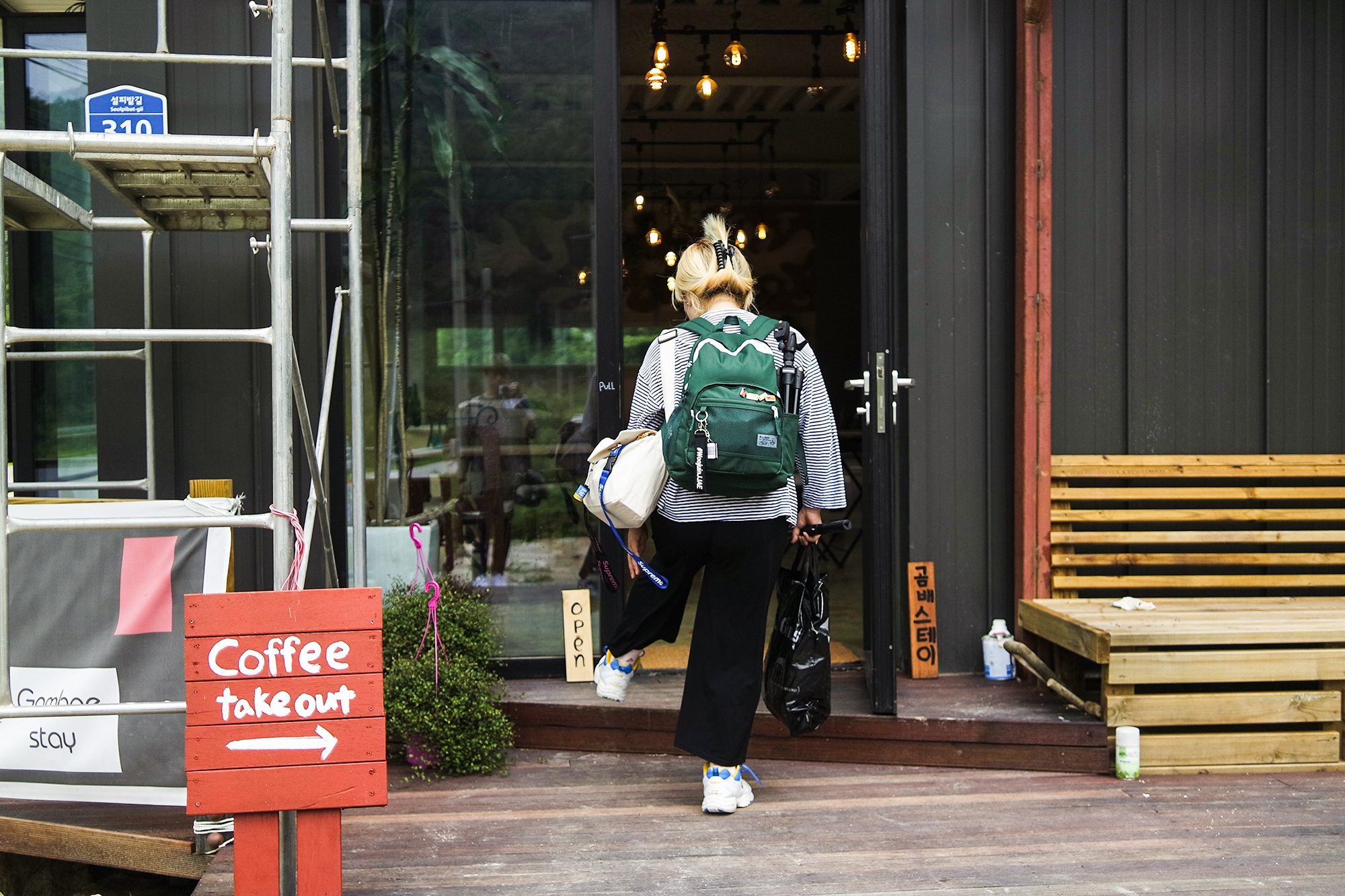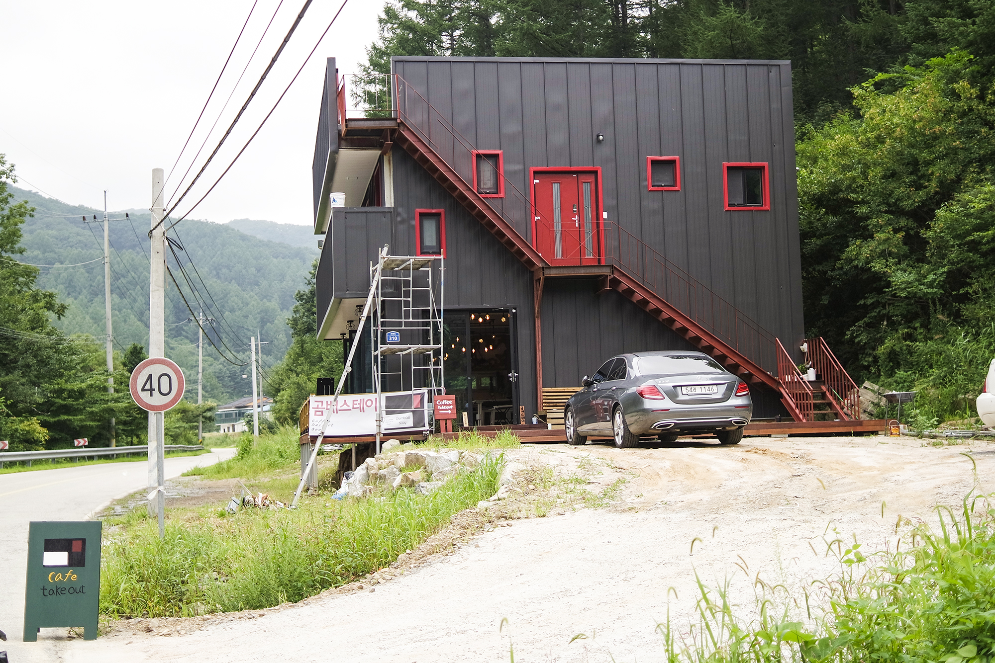 그런데! 나가보니 1주일전까지만 해도 없었다는 카페가 우리가 묵었던 곰배 누리 펜션 바로 옆에 걸어서 1분 거리에 있더라고요.