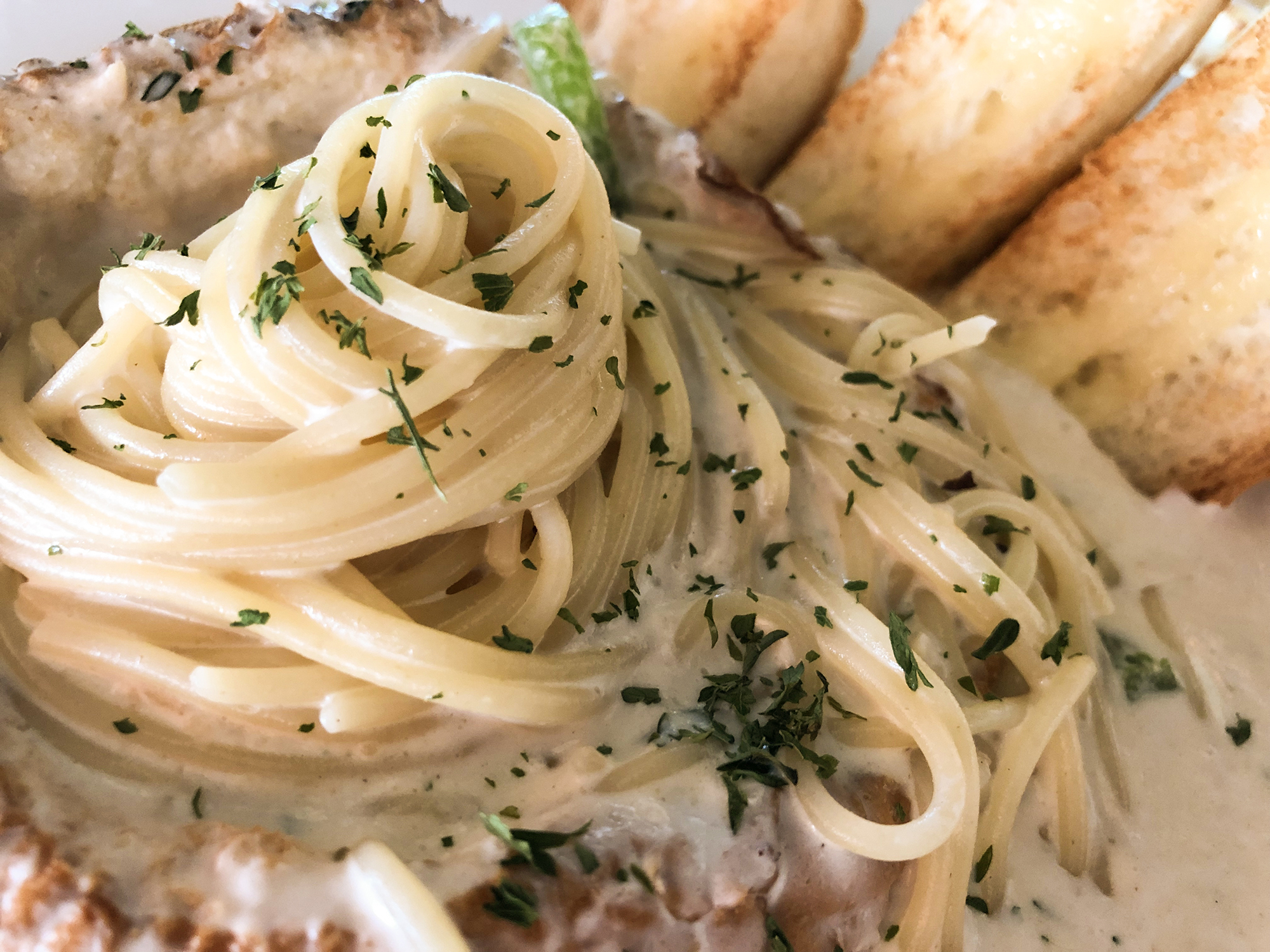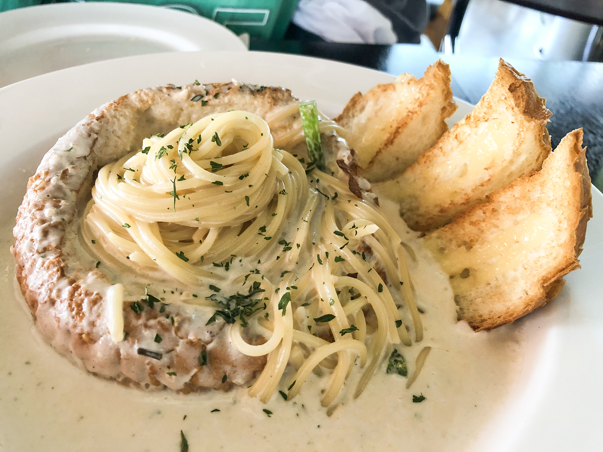 빠네 크림 파스타는 약간 매콤한 향이 있다고 쓰여있어서 로제 크림인가 생각했는데, 주문하고 보니 깔끔한 크림 파스타여서 당황했어요, 다음에 갈 때는 매콤한 빠네라고 얘기를 해야 하겠어요