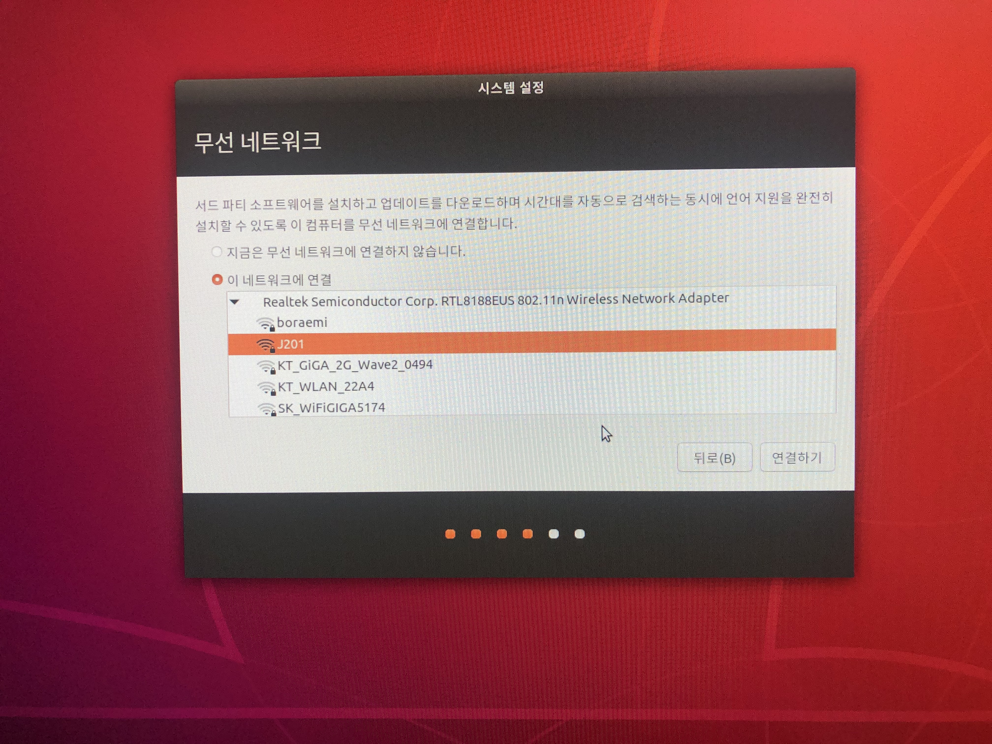 저는 다이소에서 USB 무선 랜카드 5,000원짜리를 구매해서 연결해놓으니 자동으로 무선랜이 연결되었습니다.
