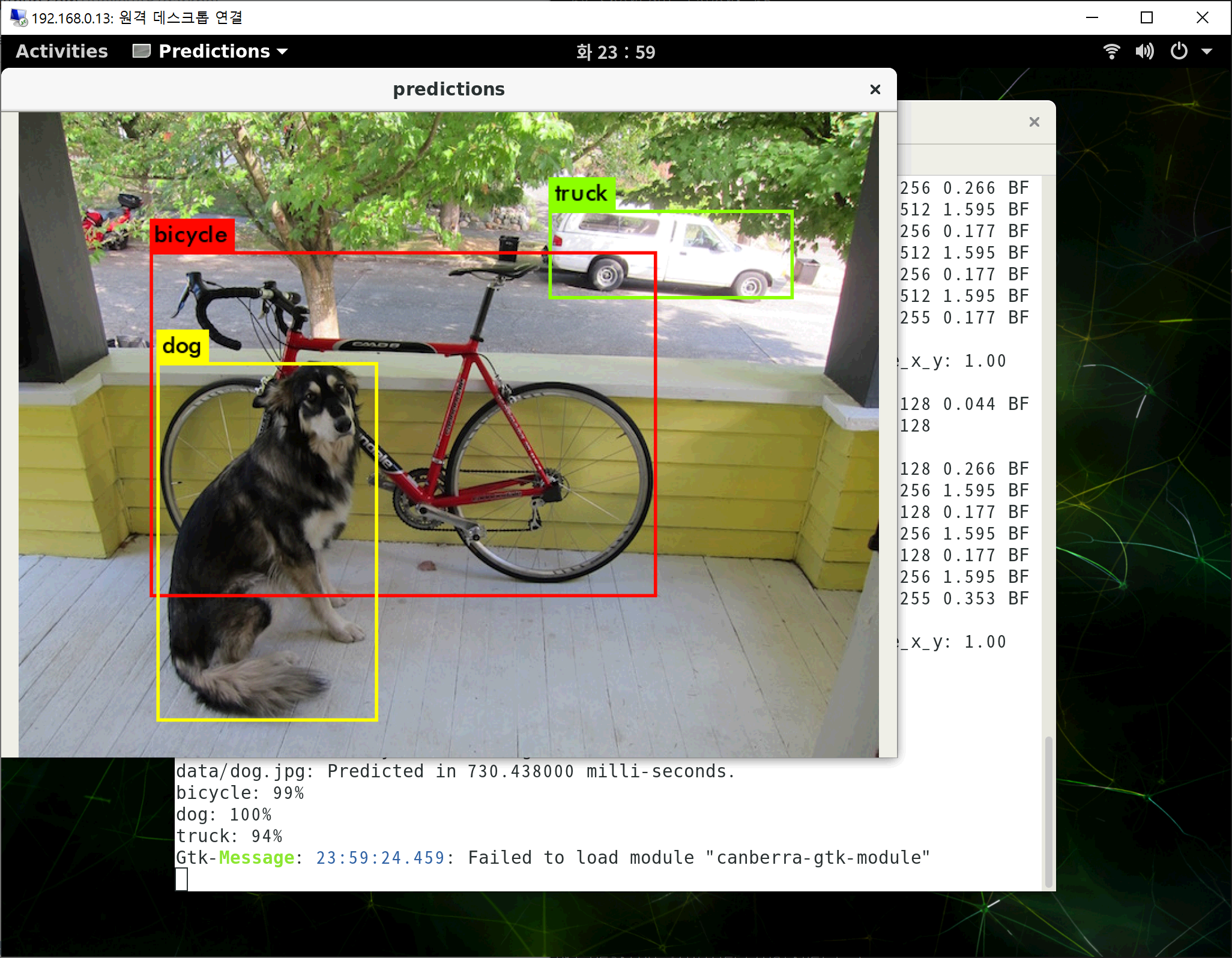 bicycle, dog, truck 각각에 대한 score가 검출된 것을 확인하실 수 있습니다.
