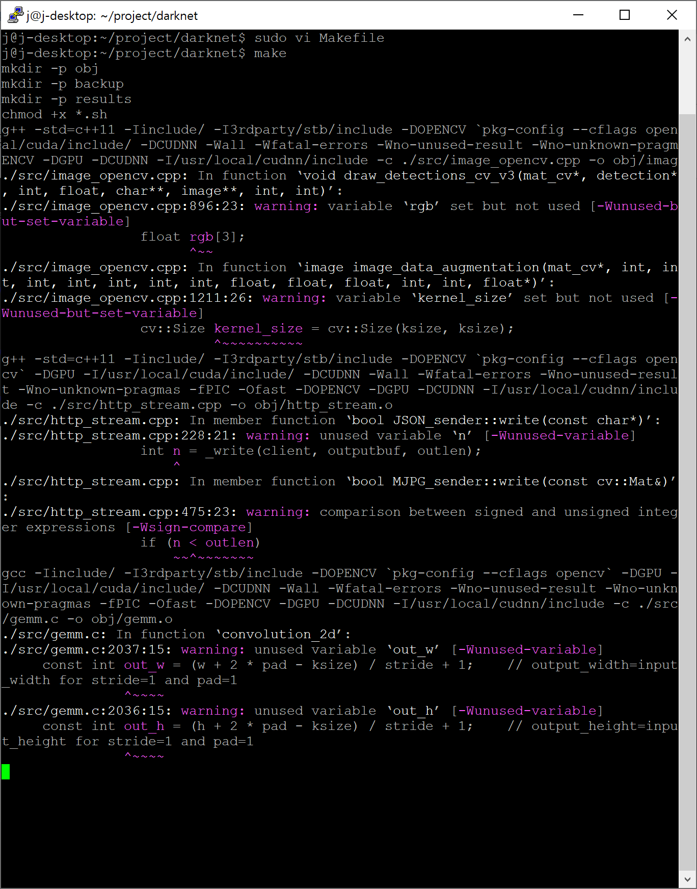 빌드가 완료되었다면 ls를 치면 darknet이라는 binary 파일이 생성되어있을 겁니다.