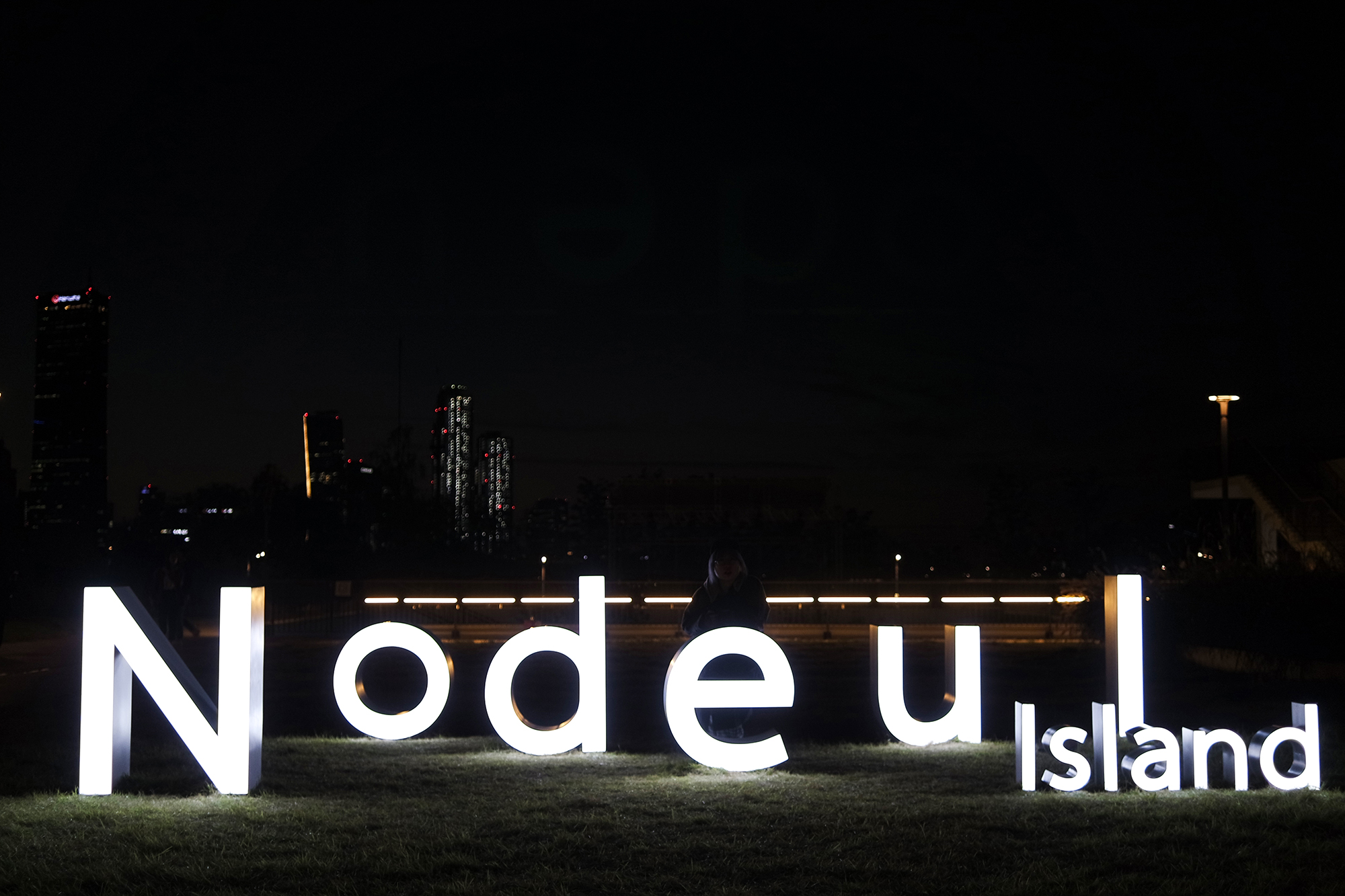 입구에 들어서면 너도나도 인증샷을 찍기 위해 Nodeul Island 네온 앞으로 모여듭니다.