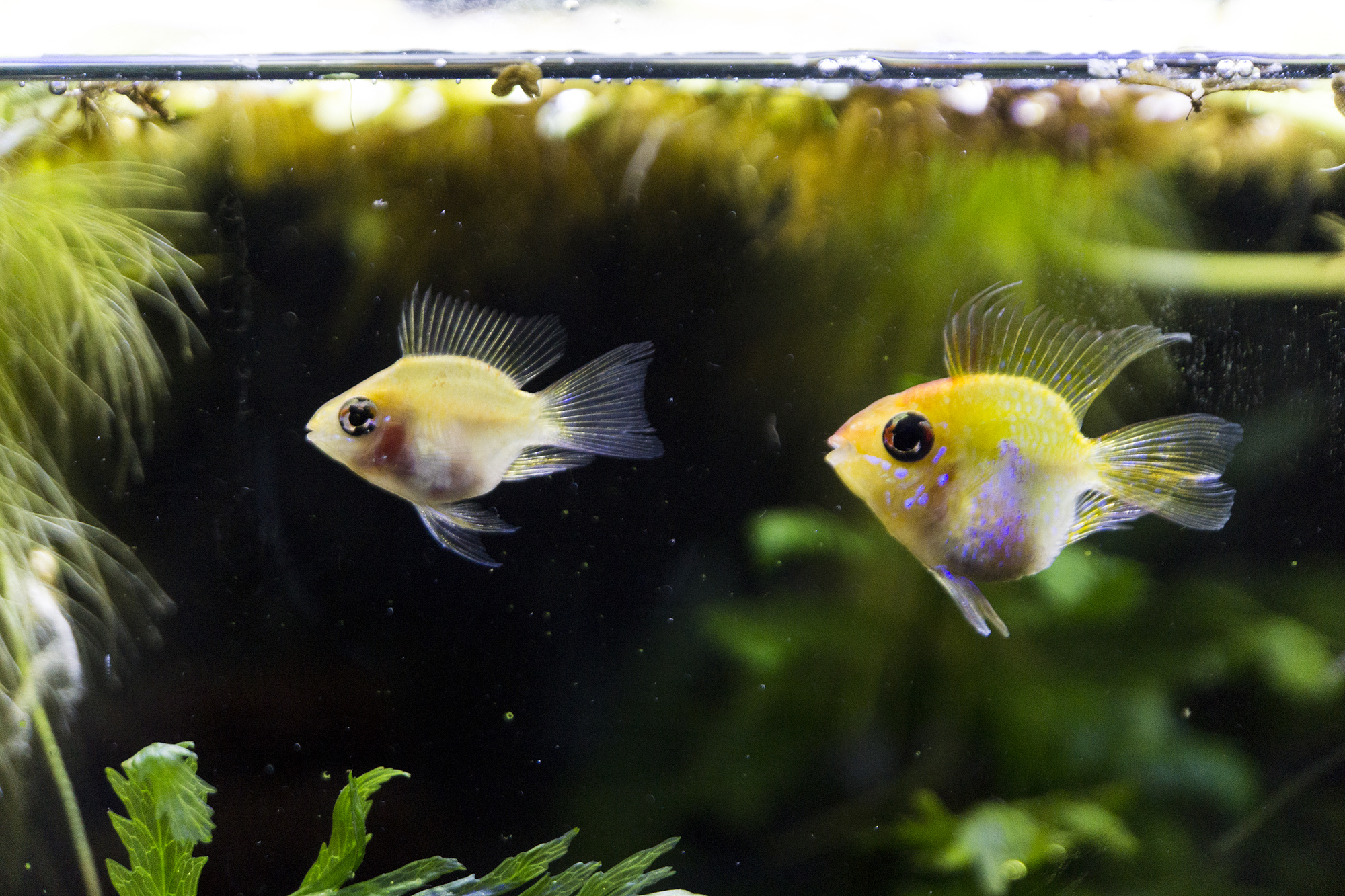 기존 키우던 골라미가 롱핀인데... 물이 안맞는지 건강이 안 좋은지... 최근 지느러미가 한번 녹은 적이 있어서 꼬리가 롱핀처럼 안 돼있네요.. 그리고 데리고온 골라미 중 한 마리는 허리가 살짝 휘어있어서 입술 모양 같기도 하고 하트 모양 같기도 하고 아픈 아이지만 더 이뻐해 줘야겠습니다.