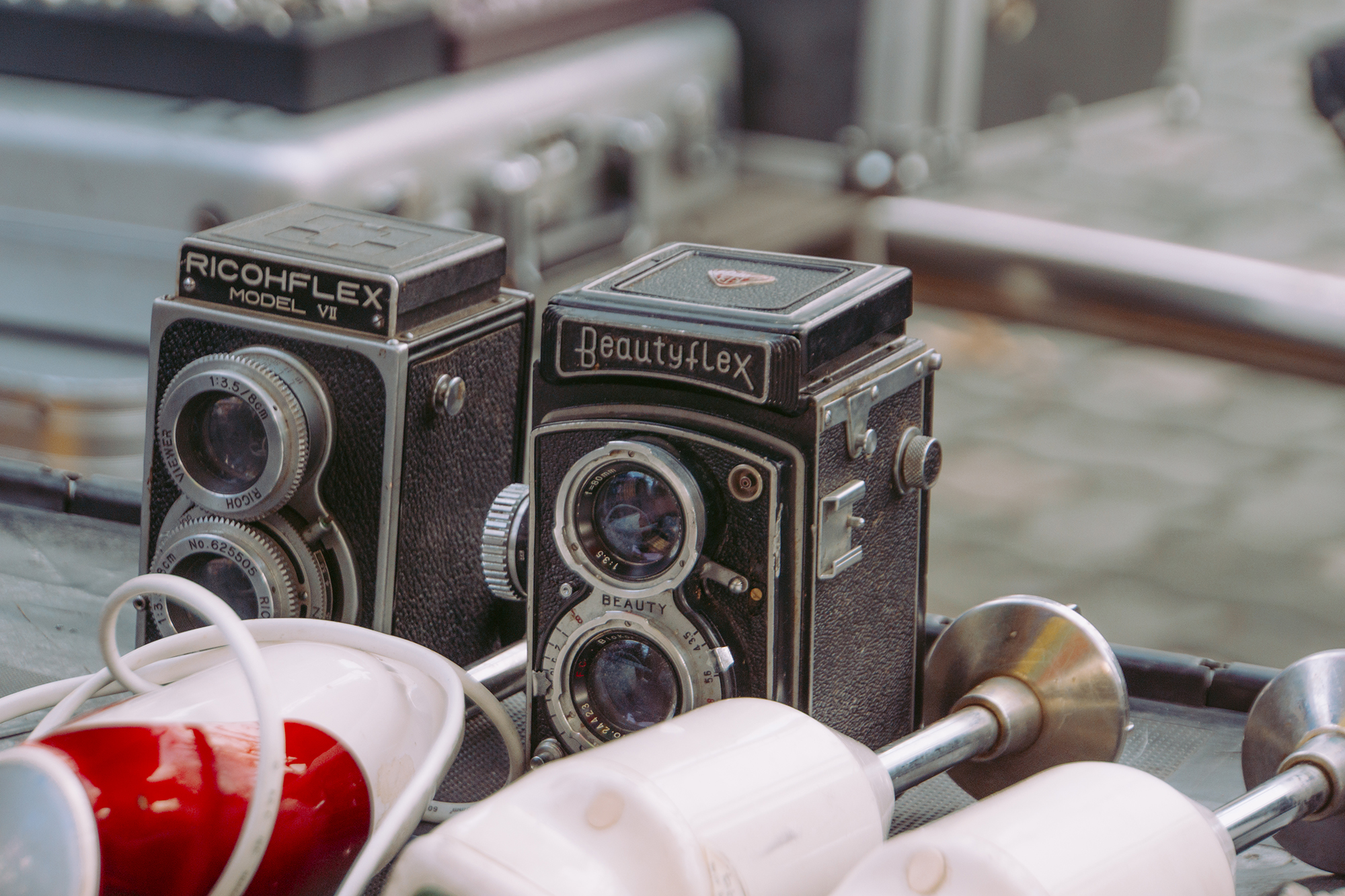 입구에 들어서자 작은 소품들을 파는 곳이 있는데요, 동작을 할지 안 할지 모를 RICOHFLEX, Beautyflex 등 중형 카메라들이 있네요. 그 외에도 많은 상품들을 구경할 수 있지만 카메라는 가능하면 안 사는 게 좋을 것 같아요! 비싸게 모셔와서 DP용으로 놔둘 생각이라면... 필름 카메라가 핫한 요즘엔 인터넷으로도 합리적인 금액에 쉽게 구매가 가능하답니다!