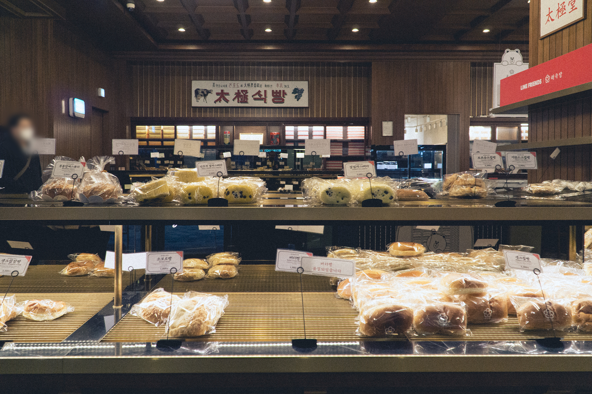 태극당이 네이버 LINE 캐릭터들과 콜라보를 하고 있는지 여기저기 LINE 브라운이 서있었습니다. 하지만 캐릭터 모양의 빵이나 상품은 보이지 않았어요. 그냥 피규어가 여기저기 서있고 포스터에 붙어있는 정도!