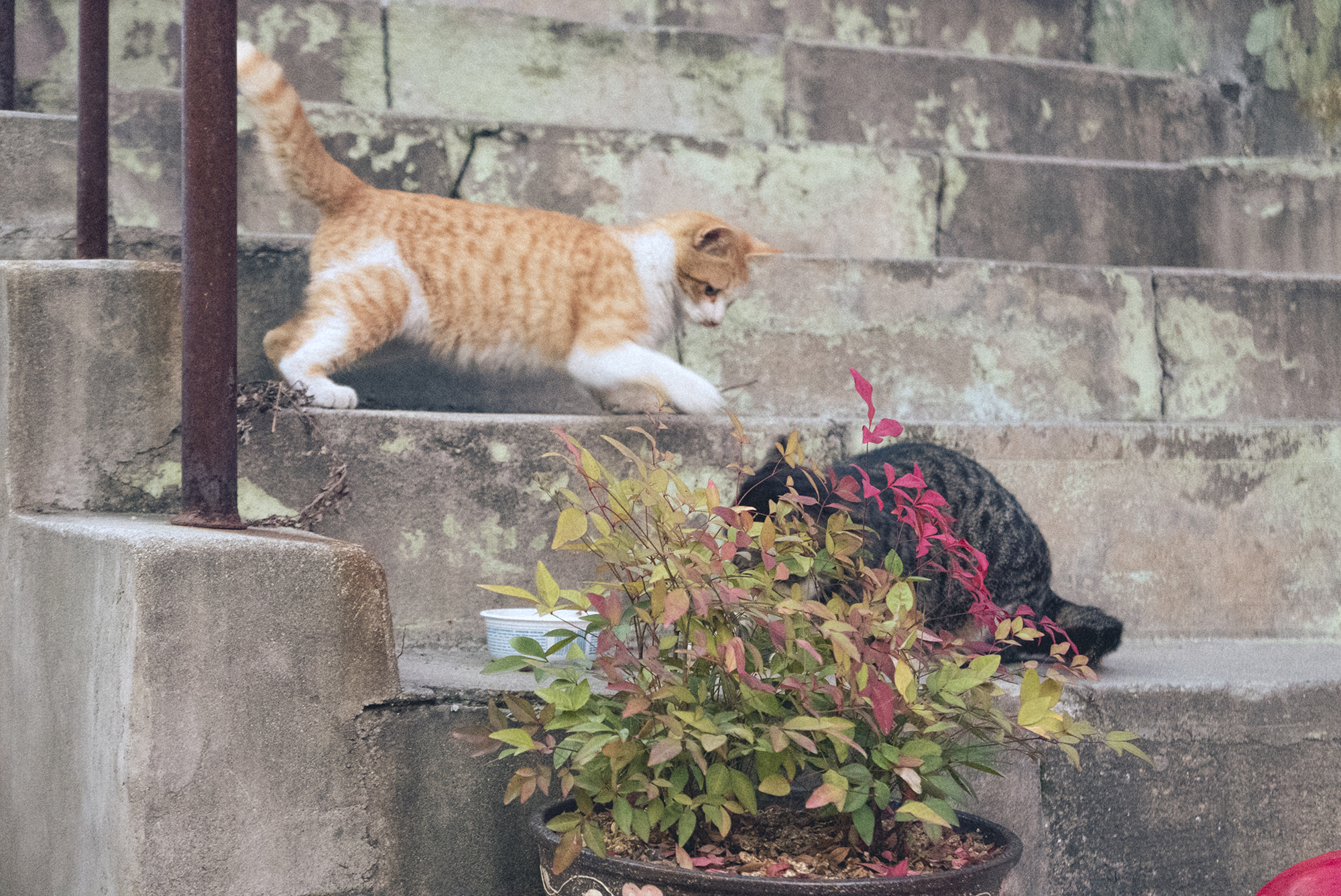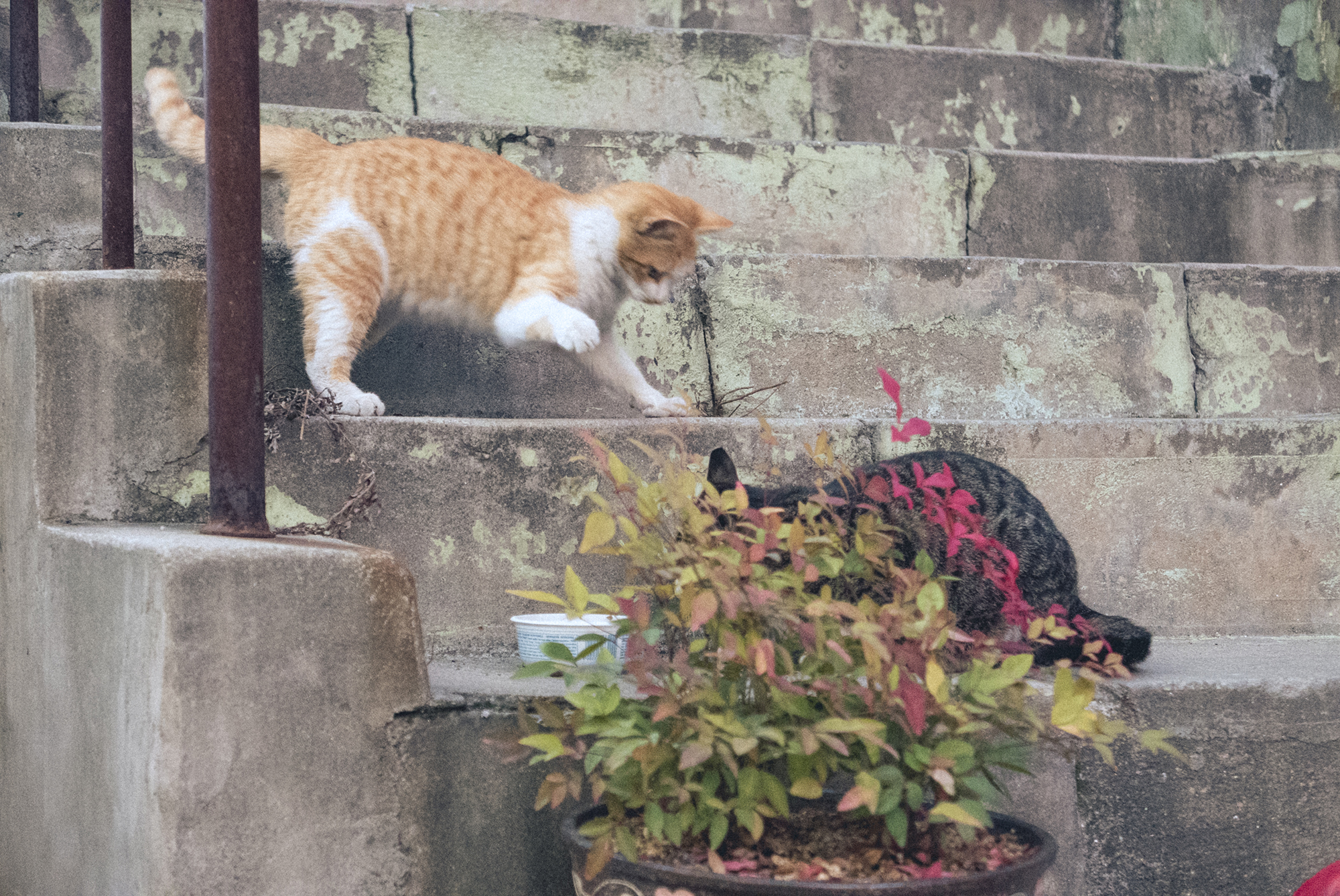 이곳 카페 사장님이 많은 고양이들을 챙겨주고 있어요. 길냥이들에게 사료뿐만 아니라 매일 캔을 따주다 보니 캔 없으면 밥을 안 먹는다고 하네요.. 이렇게 매일 밥을 챙겨 주지만 아직 한 번도 만저본적이 없다는 고귀하신 길냥이들이 무려 3마리나 있어요. 밥 뺏어먹는 게 습관인 냥이들을 위해 여러 곳에 식사를 배치해주는 배려까지 합니다.