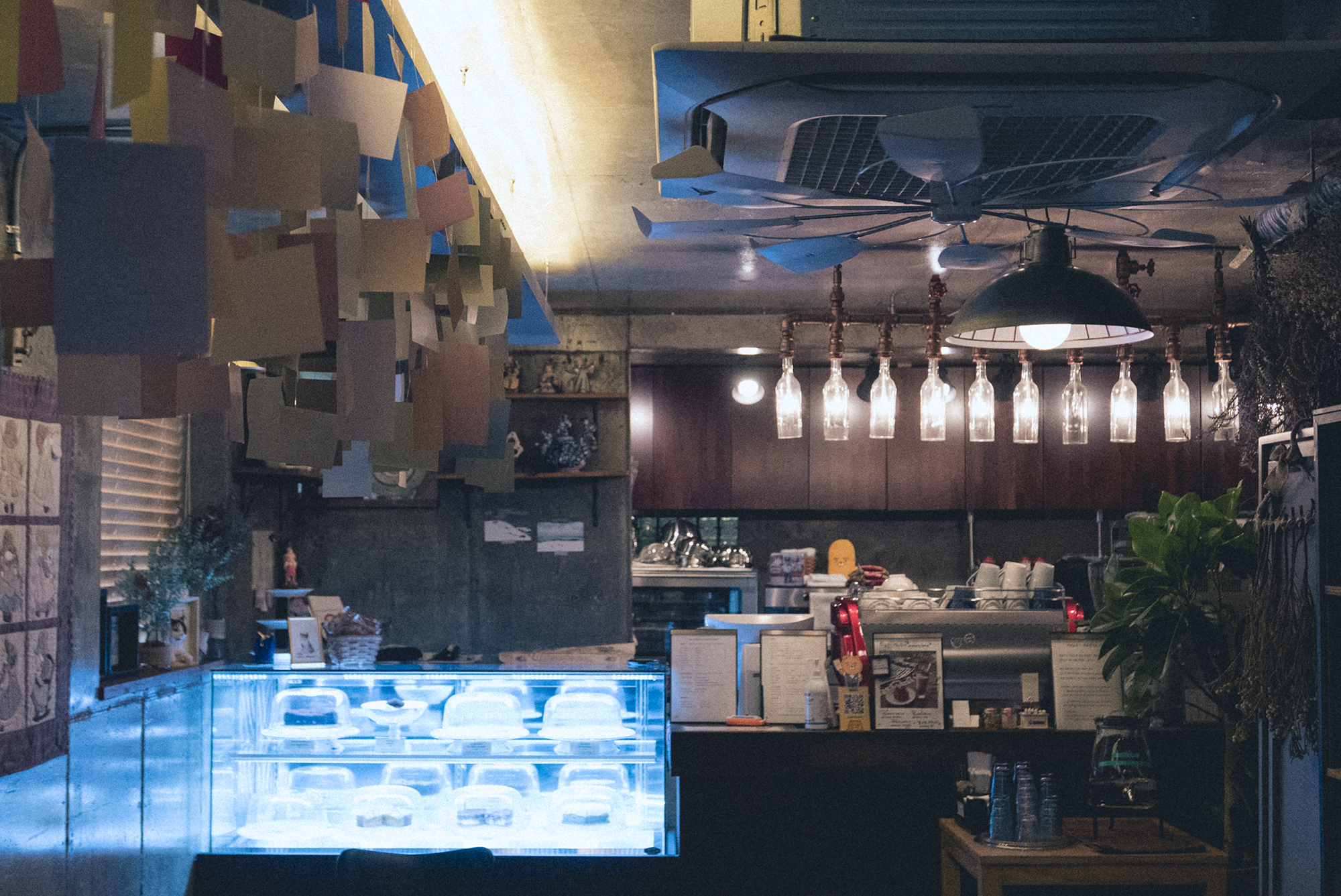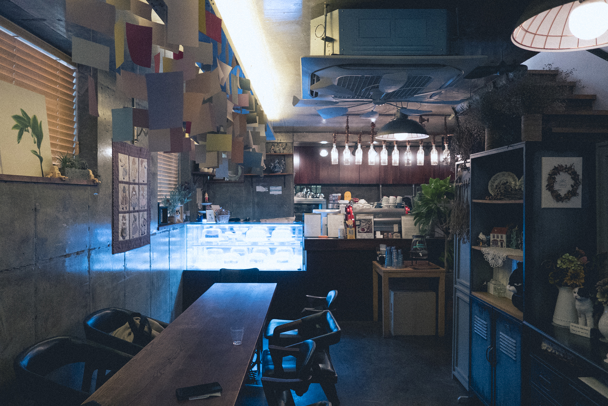 카페 죠꽁드는 2층으로 되어있으며 1층에 들어가게 되면 쭉 뻗은 다인용 테이블이 있어서 8명까지 앉을 수 있어요 그 외에는 2~4인용 테이블들이 있고 2층으로 가게 되면 야외가 보이는 창가 자리들과 테라스가 있습니다. 저 반짝거리는 곳에 디저트들이 있어요. 오늘의 디저트 단호박 크럼블과 티라미수를 먹었는데, 맛있어서 단호박 크럼블을 하나 더 시켜먹었어요 :)