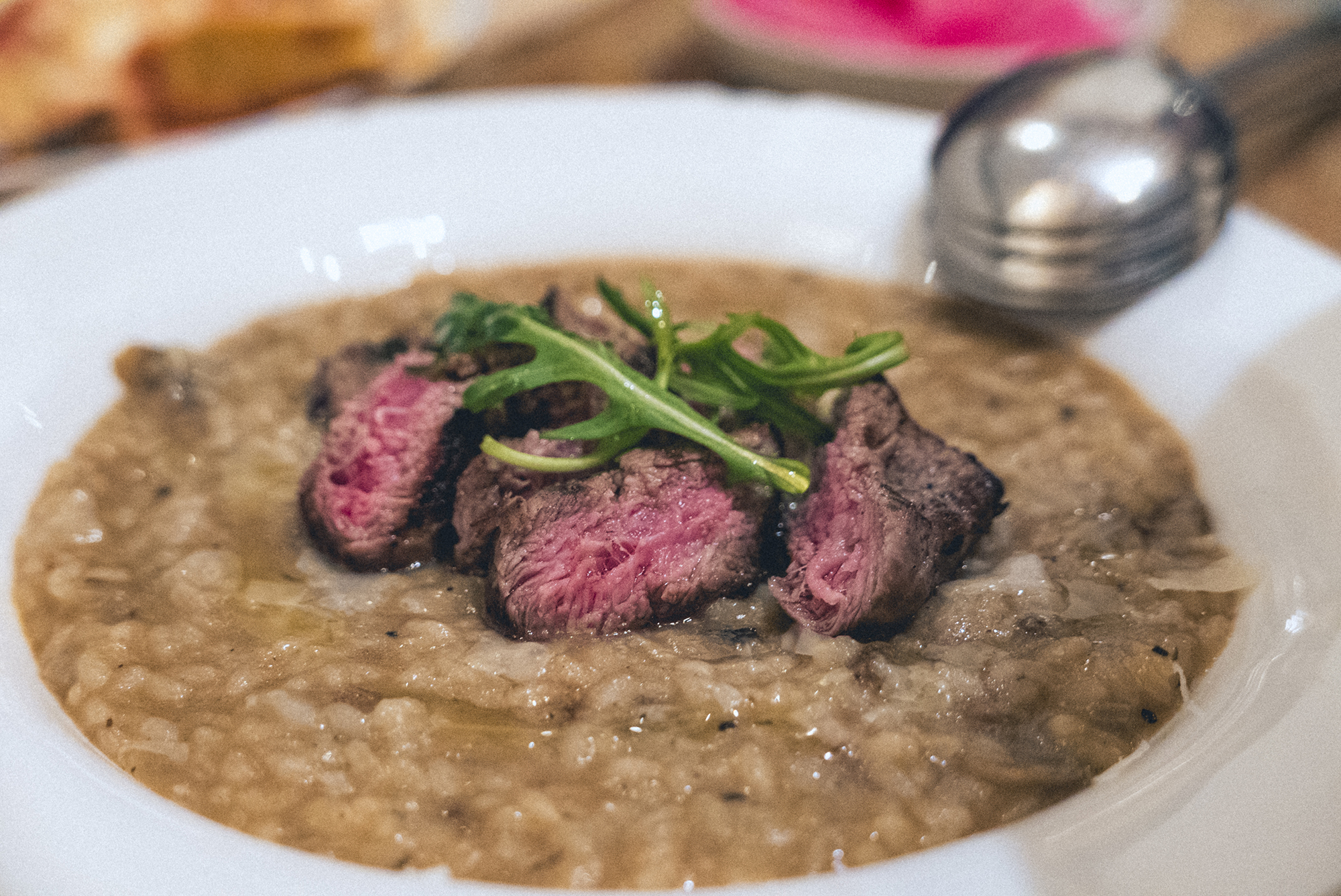 마르게리따 피자와 감베리 파스타의 경우 평소에도 자주 먹어본 메뉴다 보니 드라마틱한 느낌은 아니었습니다. 그래도 화덕 피자의 불향과 맛있는 파스타는 틀림없었지만, 처음 먹어보는 등심 머쉬룸 리조또는 새로운 느낌이었습니다. 처음 나왔을 때는 느낌은 죽처럼 나온 거 한 그릇에 19,000원이라니.. 라는 생각이 들었지만, 트러플오일의 치트키때문인지 입안 가득한 버섯의 향과 맛있게 잘 구워진 등심의 맛이 너무나도 잘 어우러져 가장 만족스러웠던 메뉴입니다. 여럿이서 나눠 먹었는데 다른 메뉴보다 가장 먼저 없어진 메뉴가 아닐까 싶은데요, 워낙 순식간에 사라진 메뉴라서 한그릇 더 먹고 싶어 졌던 메뉴입니다.