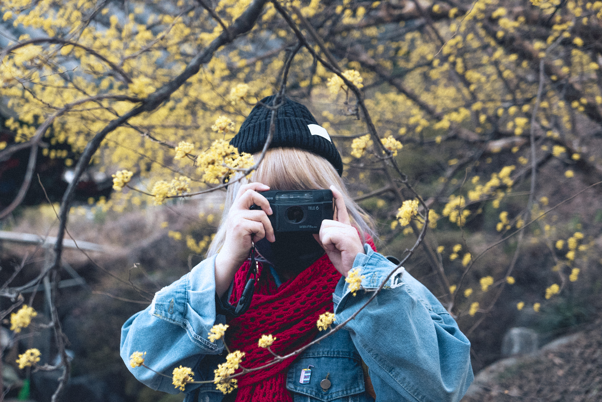 인적이 드문 안쪽으로 들어가다 보면 낮게 뻗어있는 산수유나무도 볼 수 있습니다. 큰 나무에는 인물을 걸쳐 찍거나 할 수 없는 문제가 있어서 작은 산수유나무를 찾아서 이렇게 찍어봤는데요, 카메라가 망원이 아니다 보니 작은 나무가 더 이쁘게 잘 나오는 것 같아요 :)