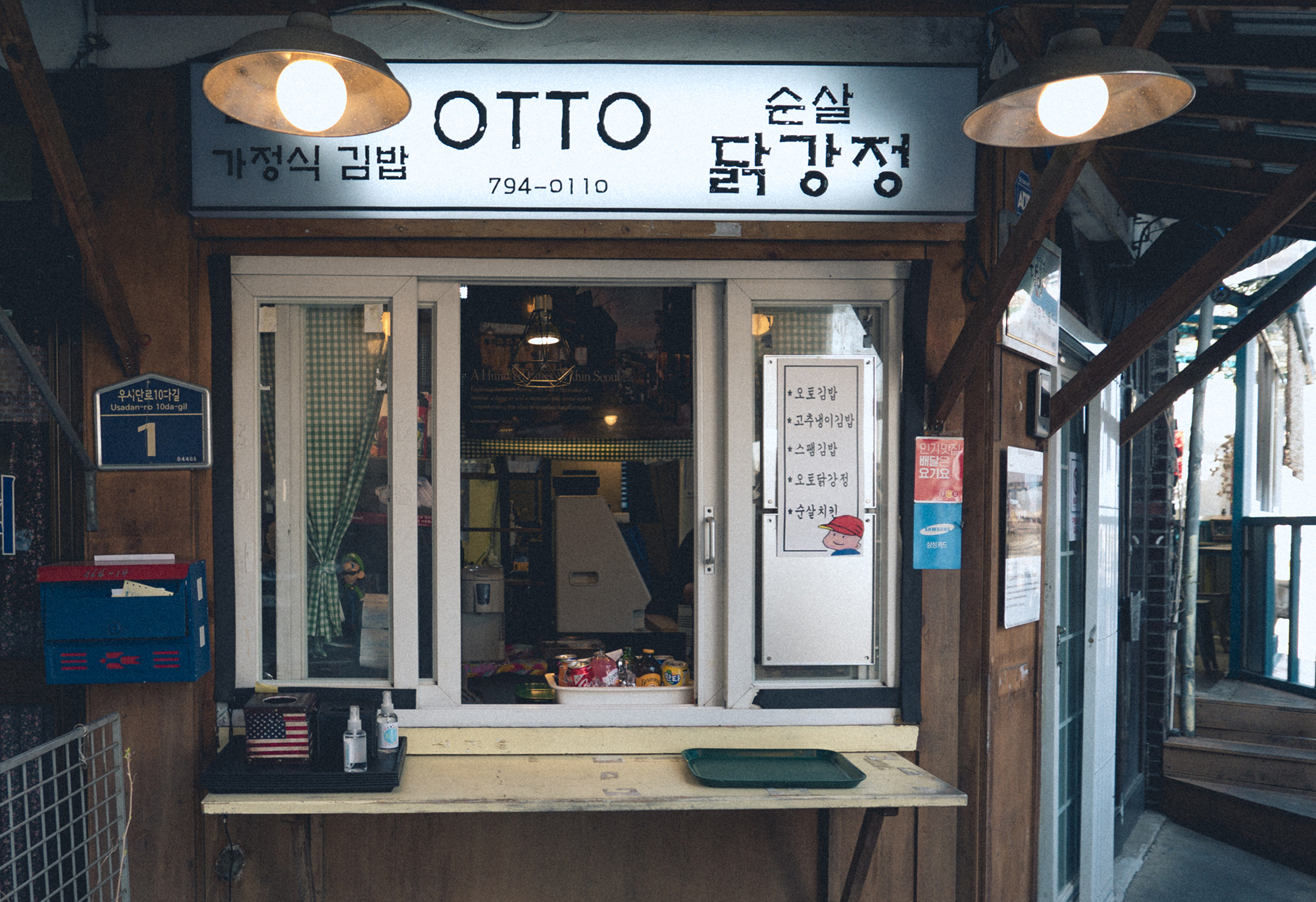 우사단길을 따라 걷다보면 길가에서 OTTO라는 가정식 김밥집을 볼 수 있습니다. 분식집처럼 다양한 메뉴는 아니지만 이 가게만의 특색 있는 김밥과 닭강정을 파는 곳인데요 생활의 달인에도 출연할 정도로 독특한 곳이라고 합니다! 그러다 보니 가격은 조금 비싼 편이라고 느껴지는 건 어쩔 수 없었습니다. 위치는 지도에 "이태원 OTTO"라고 검색하면 나오게 됩니다.