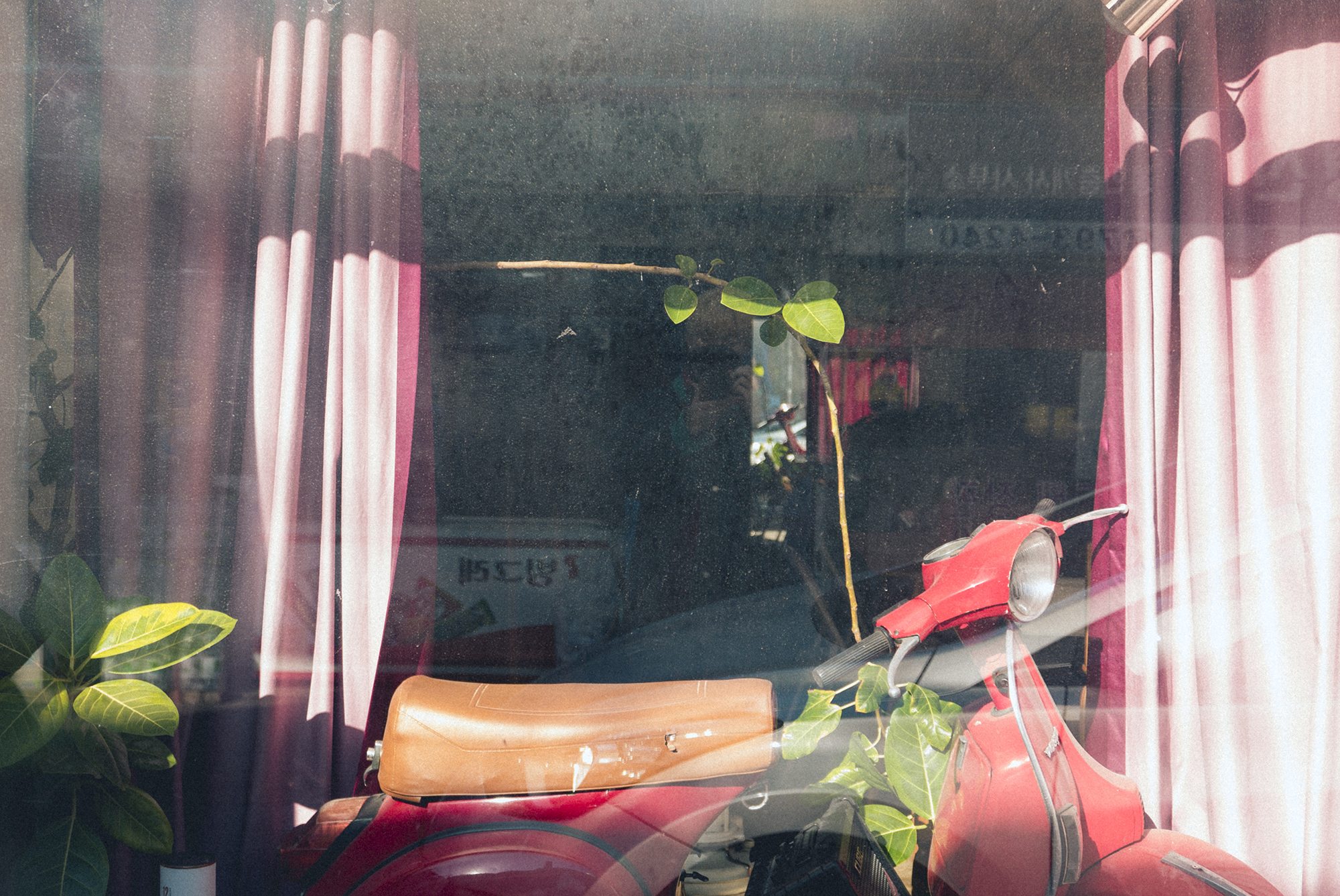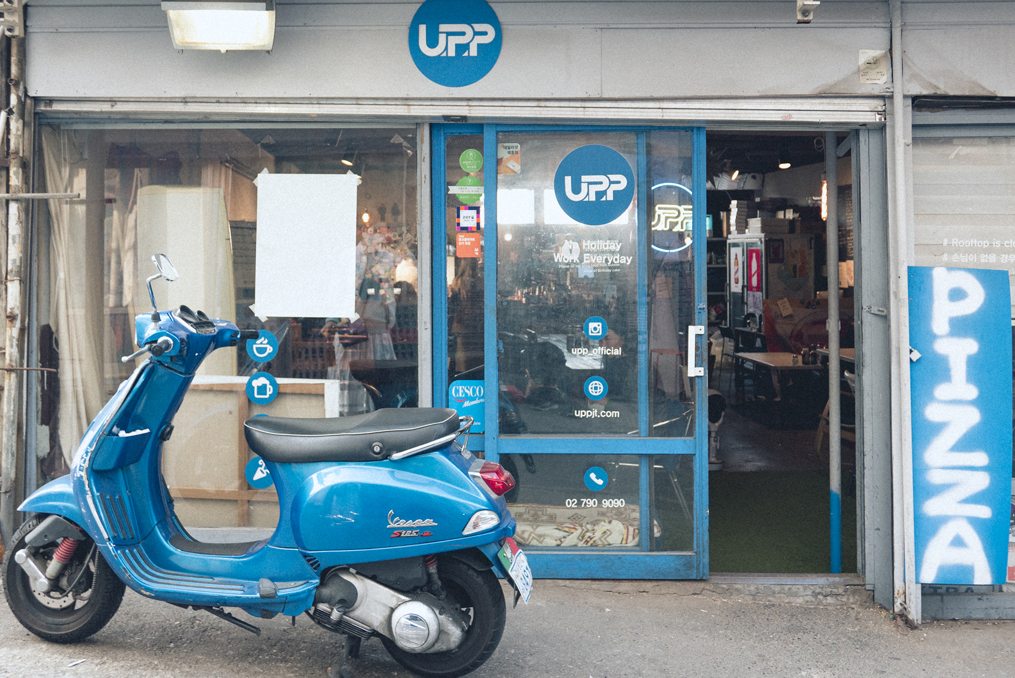 이태원 우사단길에는 깔맞춤을 좋아하는 사람들이 참 많아 보입니다. 이후에 또 나오겠지만 붉은 커튼에 붉은 스쿠터를 맞춰놓고 있는 모습인데요, 이것도 인테리어에 일부인지 스쿠터는 매장 안에 보관되어있네요