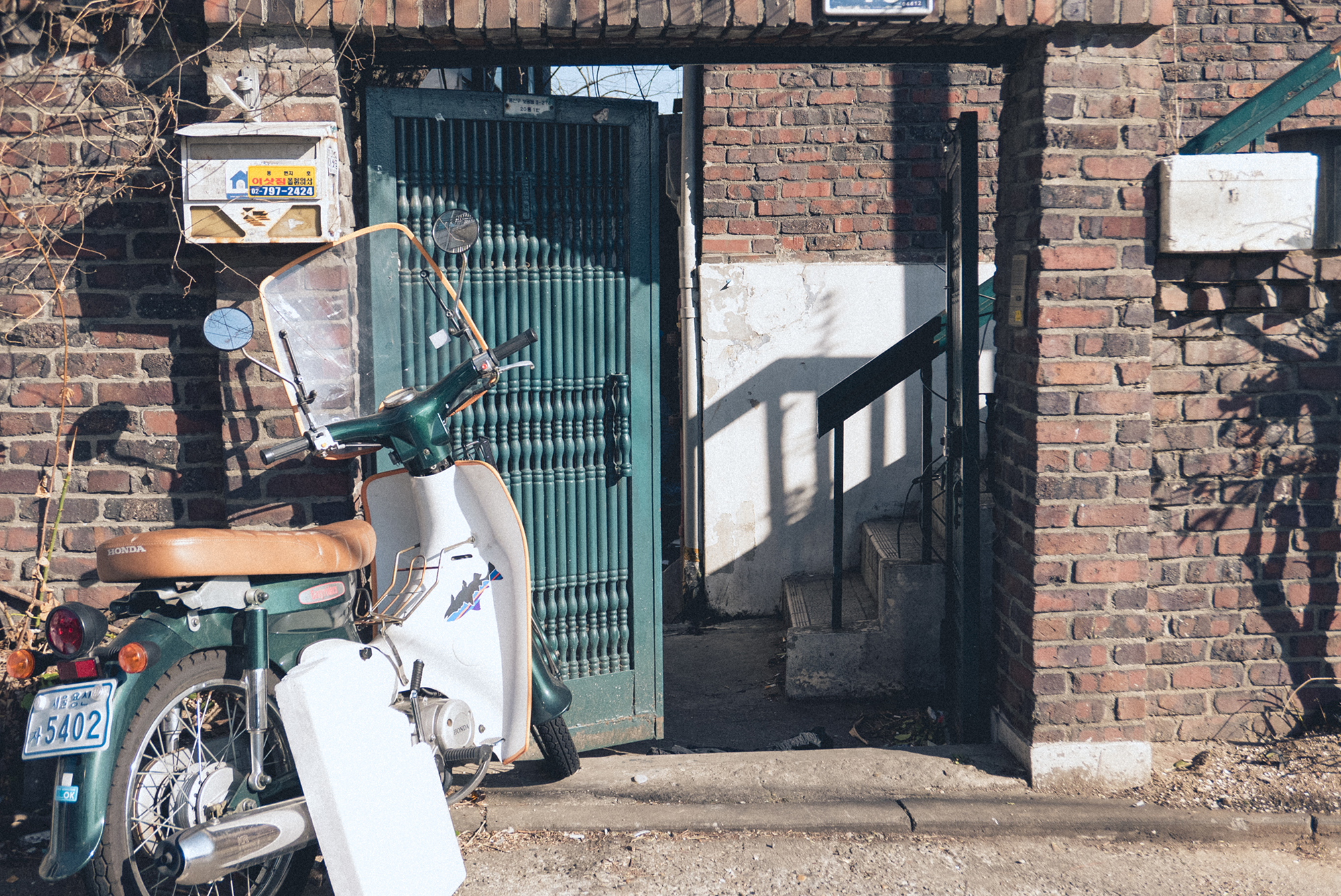 지나가다 보면 많이 볼 수 있어요 대문의 색상과의 깔맞춤, 건물의 색상과의 깔맞춤 등 시선을 조금만 바꿔보면 재미있는 사진들을 많이 찍을 수 있어요~ 사진 찍으러 다니다 보면 이런 요소들을 찾는 것도 또 하나의 재미로 느껴집니다.