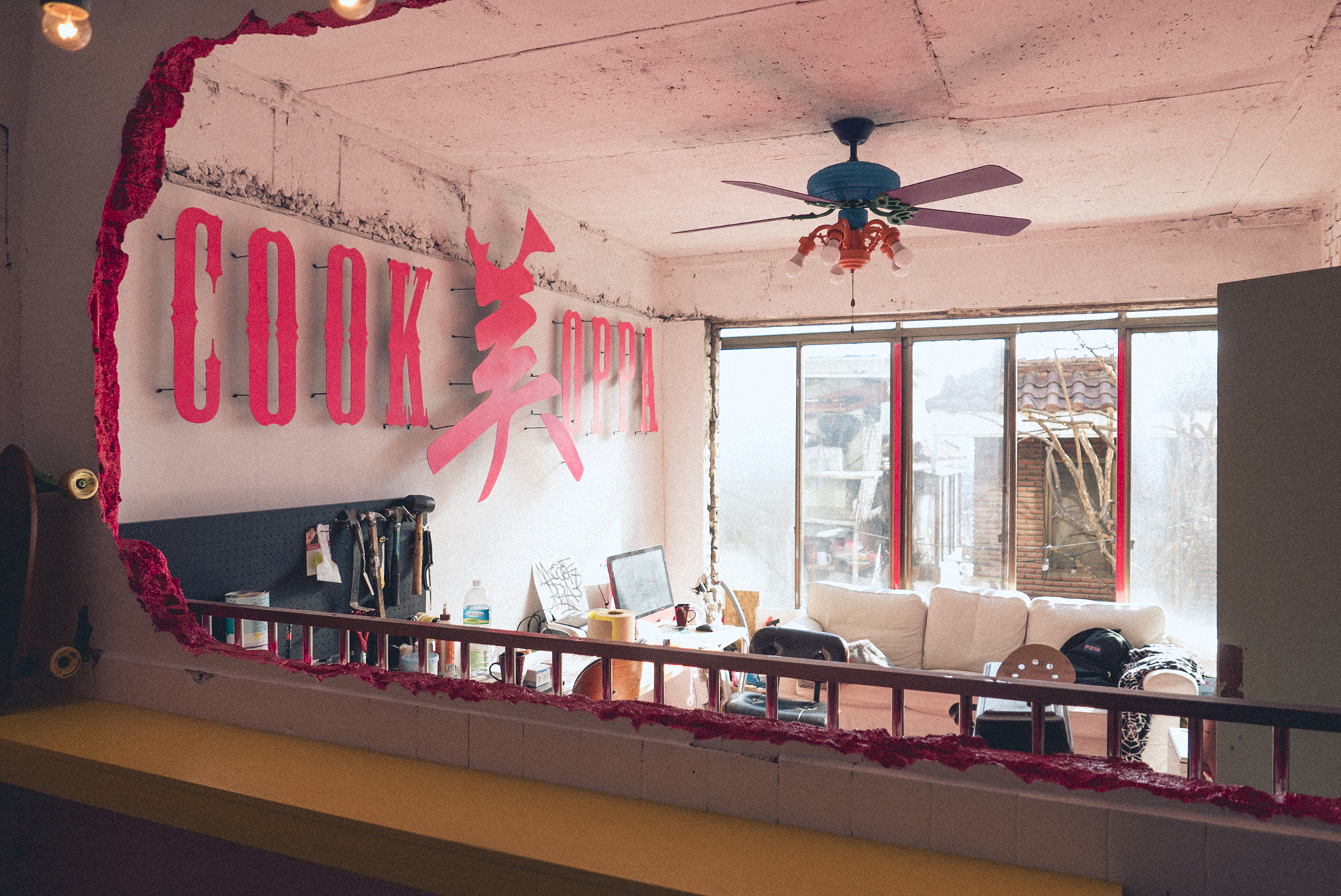 이태원 우사단길에는 옛날 건물들을 그대로 사용하거나 약간만 개조해서 식당, 카페, 게스트하우스 등을 운영하고 있습니다. 그중 조금 다른 분위기의 코인 빨래방에 잠깐 들어갔는데 빨래방 안에는 코인 노래방도 함께 있고 더 들어가니 이게 뭐죠? 어느 미쿡분의 작업실이 자리 잡고 있었습니다. 신기해서 둘러보니 사진 찍어도 된다고 하셔서 사진도 찍어보고 멋지게 꾸며진 인테리어에 감탄했습니다. 그런데 알아보니 미쿡오빠(美COOK OPPA)라는 수제버거집이 따로 있더라고요~ 미쿡오빠 매장에 있는 소품과 같은 종류의 소품들을 만들고 있었는데.. 아마 사장님이었을까요..?