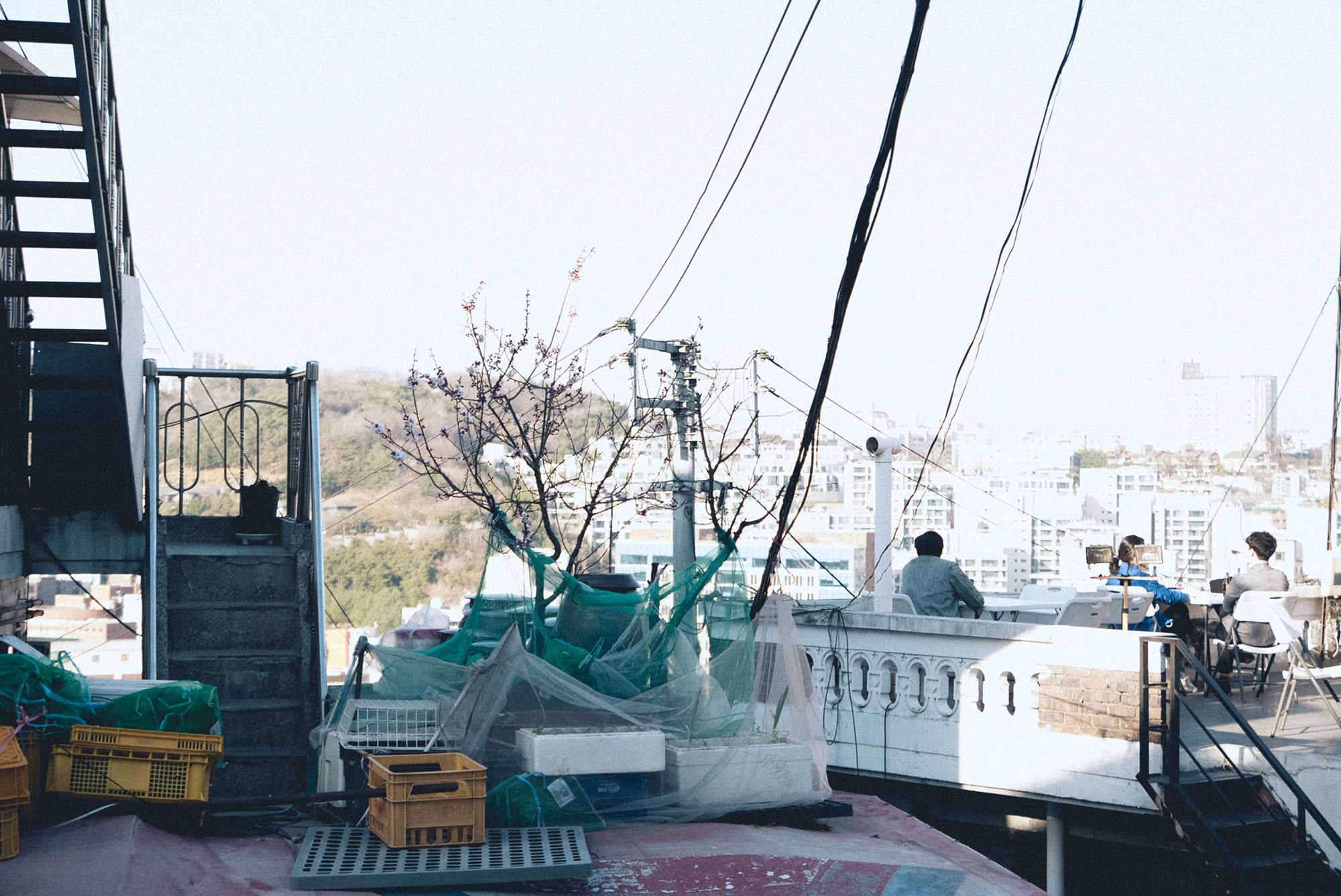 옛날 건물들을 개조해서 카페로 운영하다 보니 옥상에도 테이블이 자리 잡고 있어요. 기억으로는.. 이날은 분명 추웠는데 분위기를 즐기기 위해서인지 야외에서 커피를 즐기고 있는 모습을 볼 수 있었어요. 겨울엔 추울 거고.. 여름엔 덥고.. 지금도 춥고.. 그런데도 저렇게 사람들이 있네요. 분명 높은 곳에서 내려다보이는 서울의 작은 마을 뷰는 좋을 것 같아요.