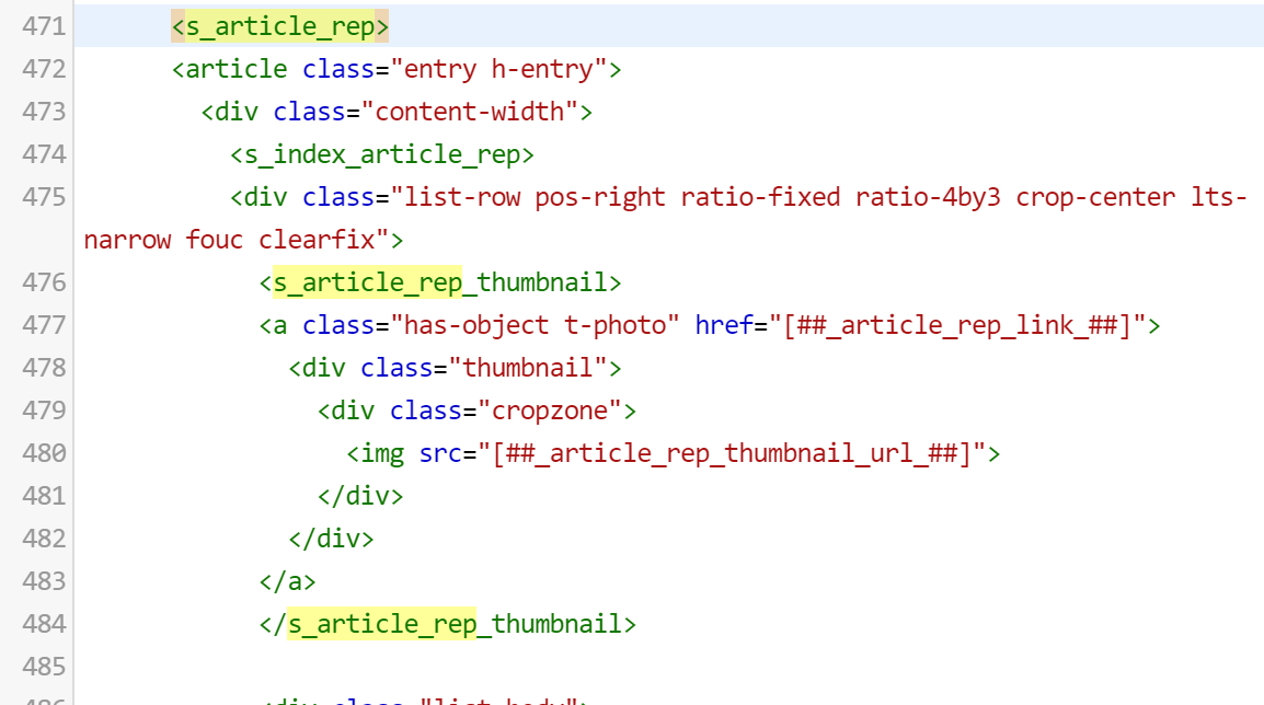 스크롤을 조금 내리다 보면 아래와 같이 <s_index_article_rep>가 끝나는 </s_index_article_rep> 지점을 찾을 수 있으며, 그 아래에 아래 스크립트를 삽입하게 되면 자연스러운 애드센스 인피드 광고를 삽입할 수 있습니다.